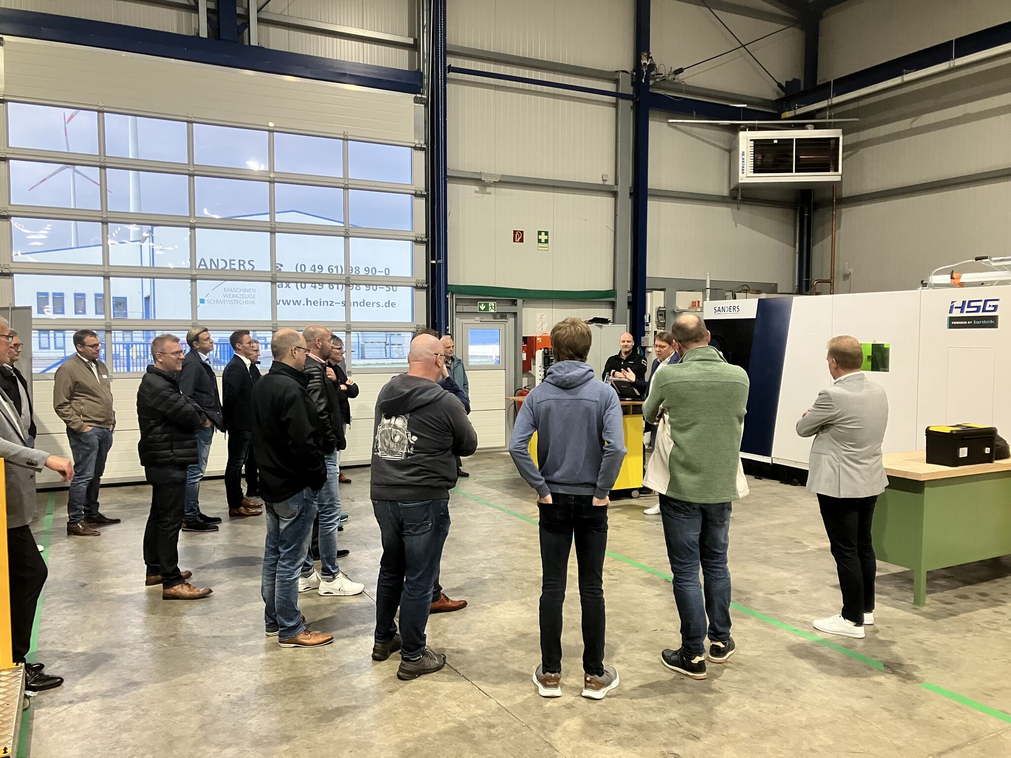 Bei einem interessanten Rundgang durch die beiden Hallen in Niederlangen wurde das ganze Spektrum dabei sicht- & erlebbar. Und apropos erlebbar: Die Teilnehmenden hatten ebenfalls die Gelegenheit sich selber eine Werkzeughalterung herzustellen. Vom Laserzuschnitt, entgraten & schleifen, gravieren und kanten durfte so eben nebenbei selbst aktiv Hand angelegt werden. Alles war dazu bestens vorbereitet und organisiert und wird sicherlich bleibenden Eindruck hinterlassen.