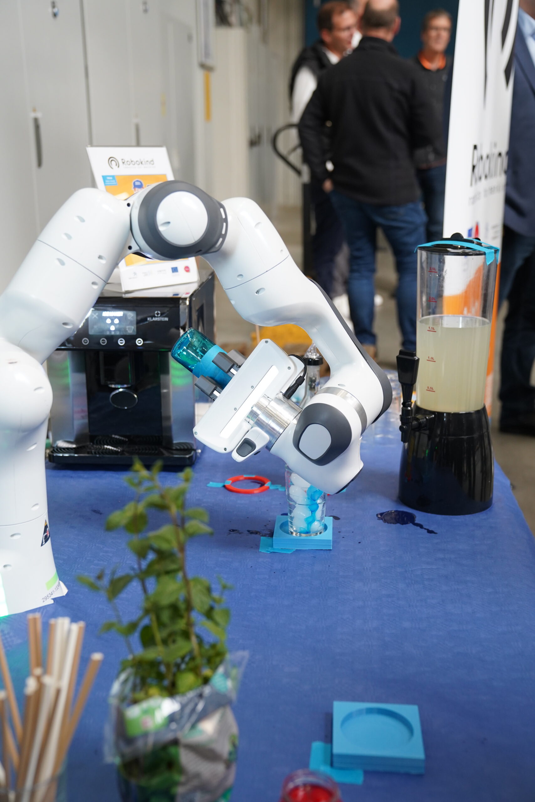Vor und nach dem offiziellen Programm stand das Netzwerken bei Getränken, Currywurst und Falafel im Vordergrund. Insgesamt 7 Aussteller aus der Region präsentierten Ihre Lösungsansätze im Bereich Robotik. Es gab reichlich Austausch.
