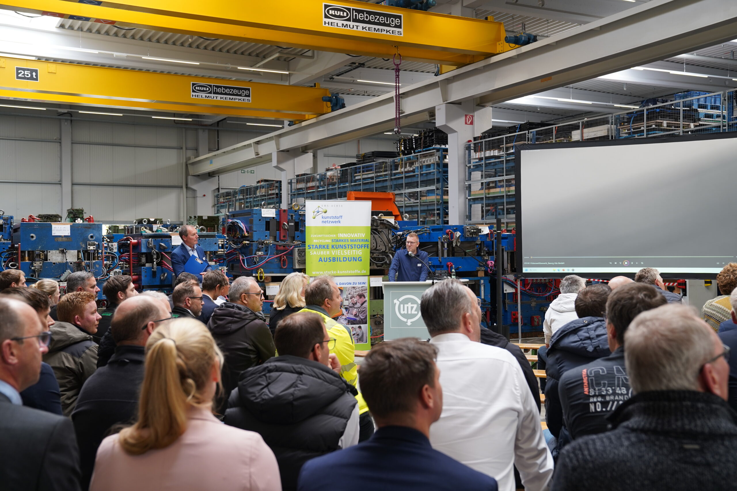 Rüdiger Köhler stellte das Gastgeberunternehmen vor und ging auf die Herausforderungen eines kunststoffverarbeitenden Mittelständers zu den Themen Energie, Nachhaltigkeit, Europäische Verpackungsrichtlinie (EWPR) und Demografie ein.