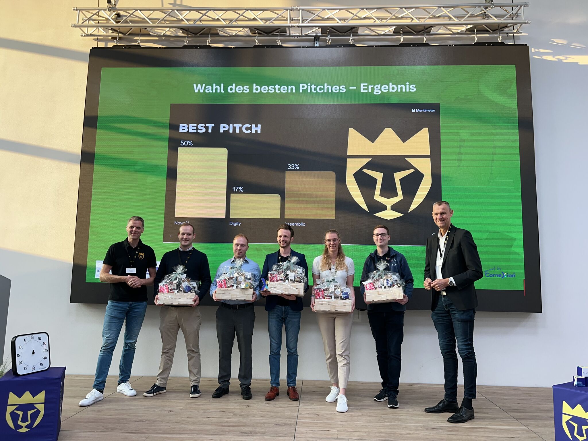 Ein besonderes Highlight war die Verleihung des Awards für den besten Pitch an Dimitrij Lewin von Novo AI, der mit seiner Idee die Hälfte der Stimmen für sich gewinnen konnte. Herzlichen Glückwunsch!