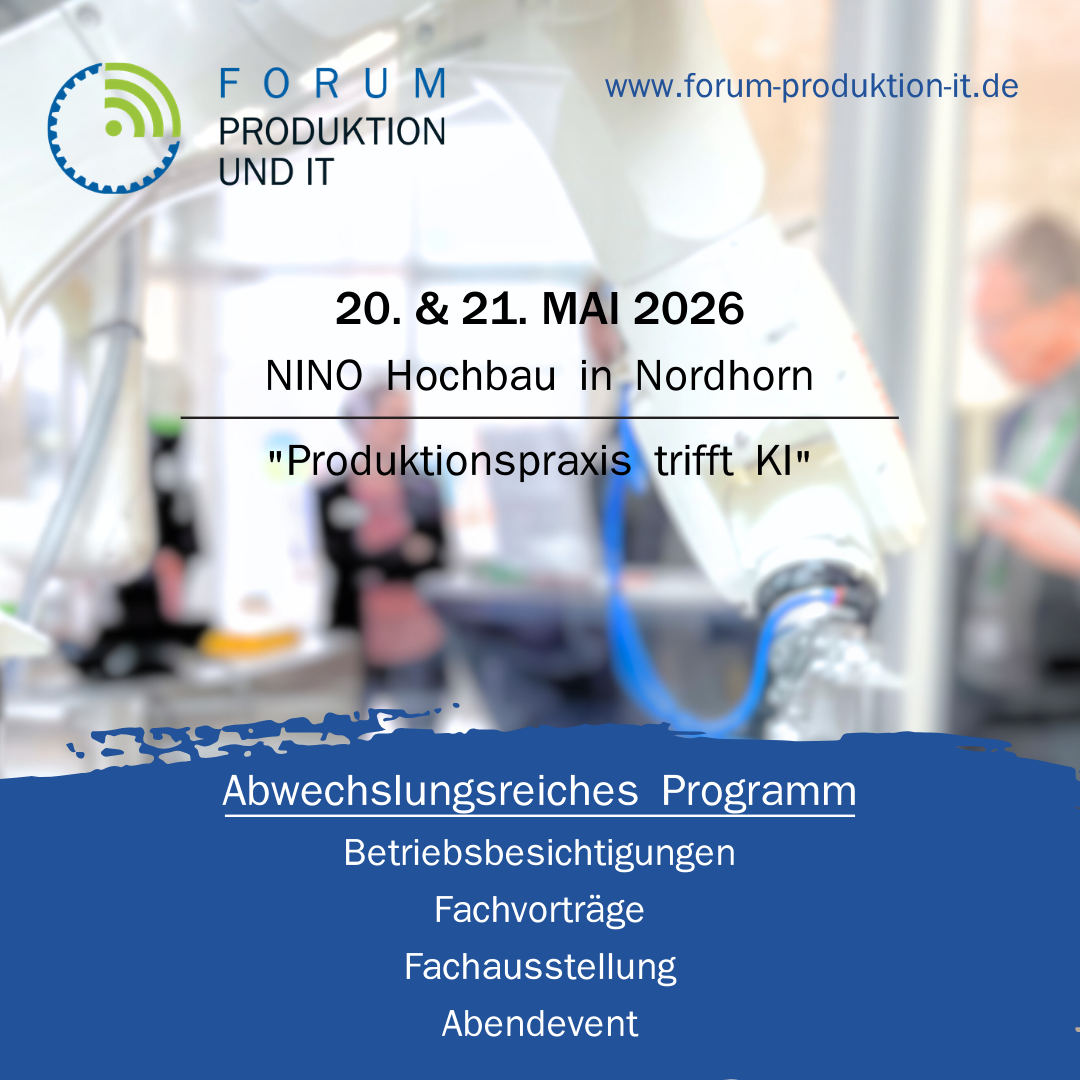 FORUM Produktion & IT 20. Mai 2026 - 21. Mai 2026 NINO-Hochbau Nino-Allee 11, Nordhorn, Germany FORUM Produktion & IT 2026 Das FORUM PRODUKTION & [...]